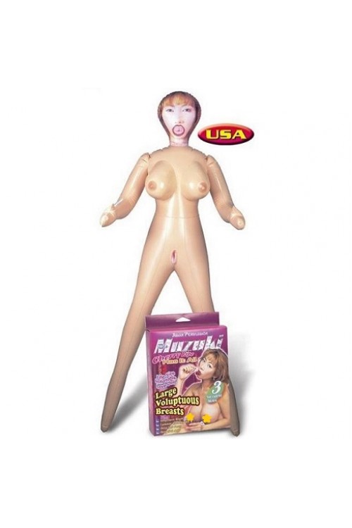 Üç işlemli, yüzüde Japon güzeli Muzuki'nin dijital baskılı resmi olan şişme bayan bebe